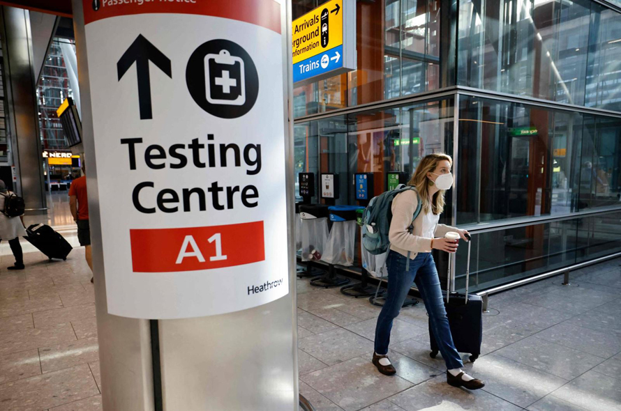 Biển chỉ dẫn về một điểm xét nghiệm COVID-19 tại san bây Heathrow, Anh. Ảnh: AFP