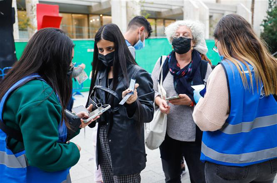 Nhân viên y tế hướng dẫn người dân làm xét nghiệm tại một trạm lưu động ở Tel Aviv ngày 4/1. Ảnh: Vũ Hội - P/v TTXVN tại Israel