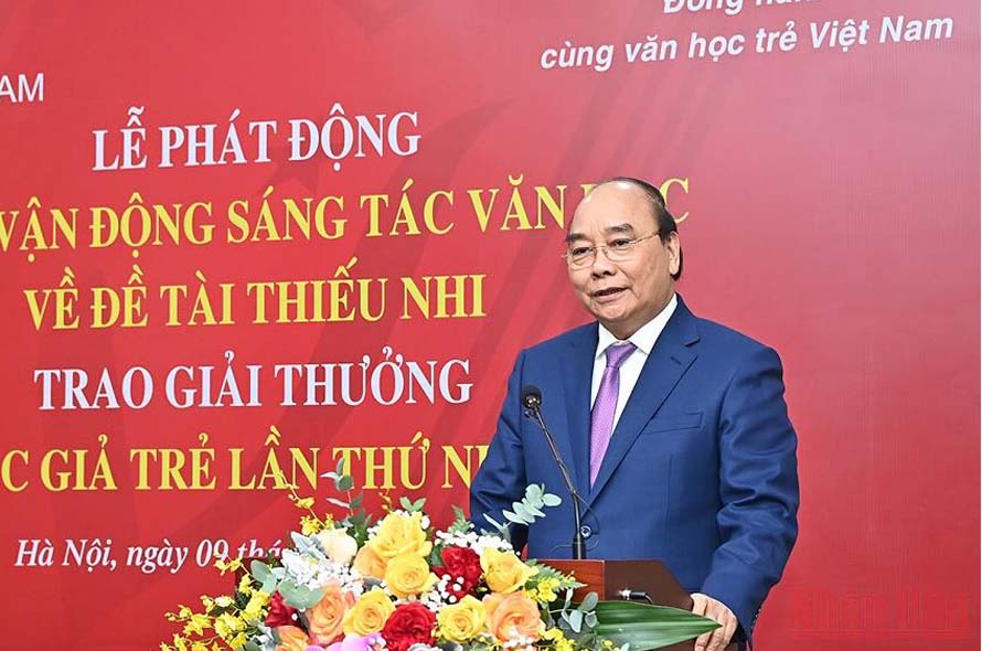 Sáng 9/1, tại Hà Nội, Chủ tịch nước Nguyễn Xuân Phúc dự Lễ phát động cuộc vận động sáng tác văn học về đề tài thiếu nhi, trao giải thưởng Tác giả trẻ lần thứ nhất của Hội Nhà văn Việt Nam và có bài phát biểu chỉ đạo. Báo Nhân Dân trân trọng giới thiệu bài phát biểu của Chủ tịch nước.