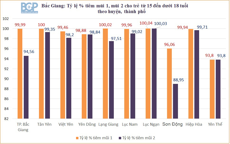 Về triển khai tiêm vắc-xin COVID-19 cho trẻ từ 12 đến dưới 18 tuổi, Sở Y tế thông tin, toàn tỉnh đã tiêm được 266.092 liều vắc xin cho trẻ trong độ tuổi này, trong đó 127.805 liều vắc xin cho trẻ từ 12 tuổi đến dưới 15 tuổi, đạt tỷ lệ mũi 1 là 99,3% và mũi 2 là 97,7%. Trẻ từ 15 đến dưới 18 tuổi đã tiêm đạt tỷ lệ mũi 1 là 96,4% và mũi 2 là 65,7%. Huyện Lạng Giang và Tân Yên đã hoàn thành bao phủ mũi 1, riêng huyện Lục Ngạn đã hoàn thành bao phủ cả 2 mũi cho trẻ em từ 15 đến dưới 18 tuổi. Huyện Sơn Động là đơn vị có tỷ lệ tiêm cho người trên 50 tuổi và trẻ em (mũi 2 đạt 88,95%) thấp nhất so với các địa phương trong tỉnh.