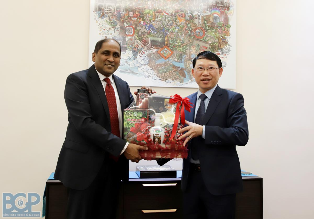 Về sản phẩm nông nghiệp, vải thiều Bắc Giang đã xuất khẩu sang Singapore rất nhiều năm nay. Vụ thu hoạch vải thiều vừa qua đúng là lúc Bắc Giang bùng phát dịch bệnh Covid-19, Singapore là một trong những thị trường tiêu thụ vải thiều cho Bắc Giang. Điều đó cho thấy, mối quan hệ giữa Việt Nam và Singapore nói chung và với tỉnh Bắc Giang nói riêng ngày càng tốt đẹp. Đồng chí tin tưởng trong năm 2022 sẽ có thêm nhiều động lực mới cho mối quan hệ giữa Bắc Giang và Singapore, đặc biệt là trong hợp tác đầu tư.