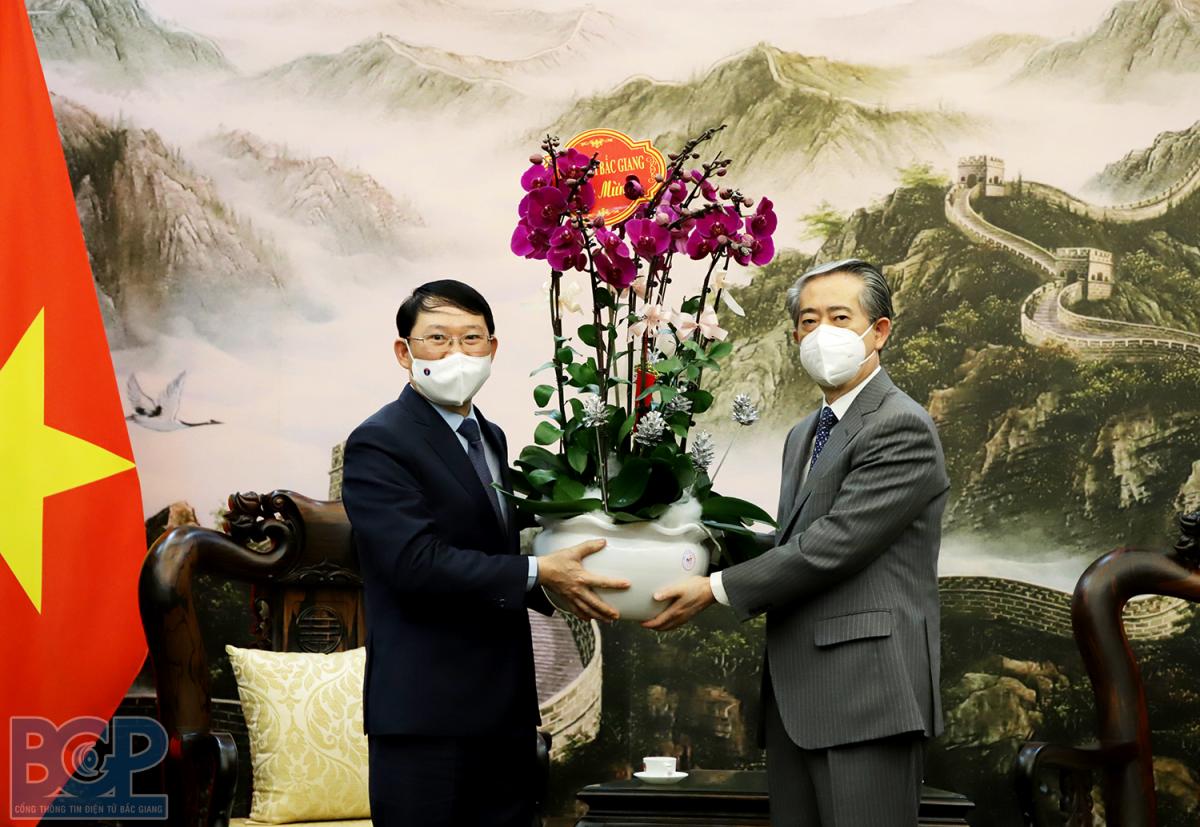 Nhân dịp năm mới 2022 và chuẩn bị đón Tết cổ truyền, thay mặt lãnh đạo tỉnh Bắc Giang, Chủ tịch UBND tỉnh Lê Ánh Dương gửi lời chúc mừng tốt đẹp nhất tới ngài Đại sứ và cán bộ, nhân viên Đại sứ quán. Đồng thời trân trọng mời ngài Đại sứ đến thăm Bắc Giang vào thời gian thích hợp.