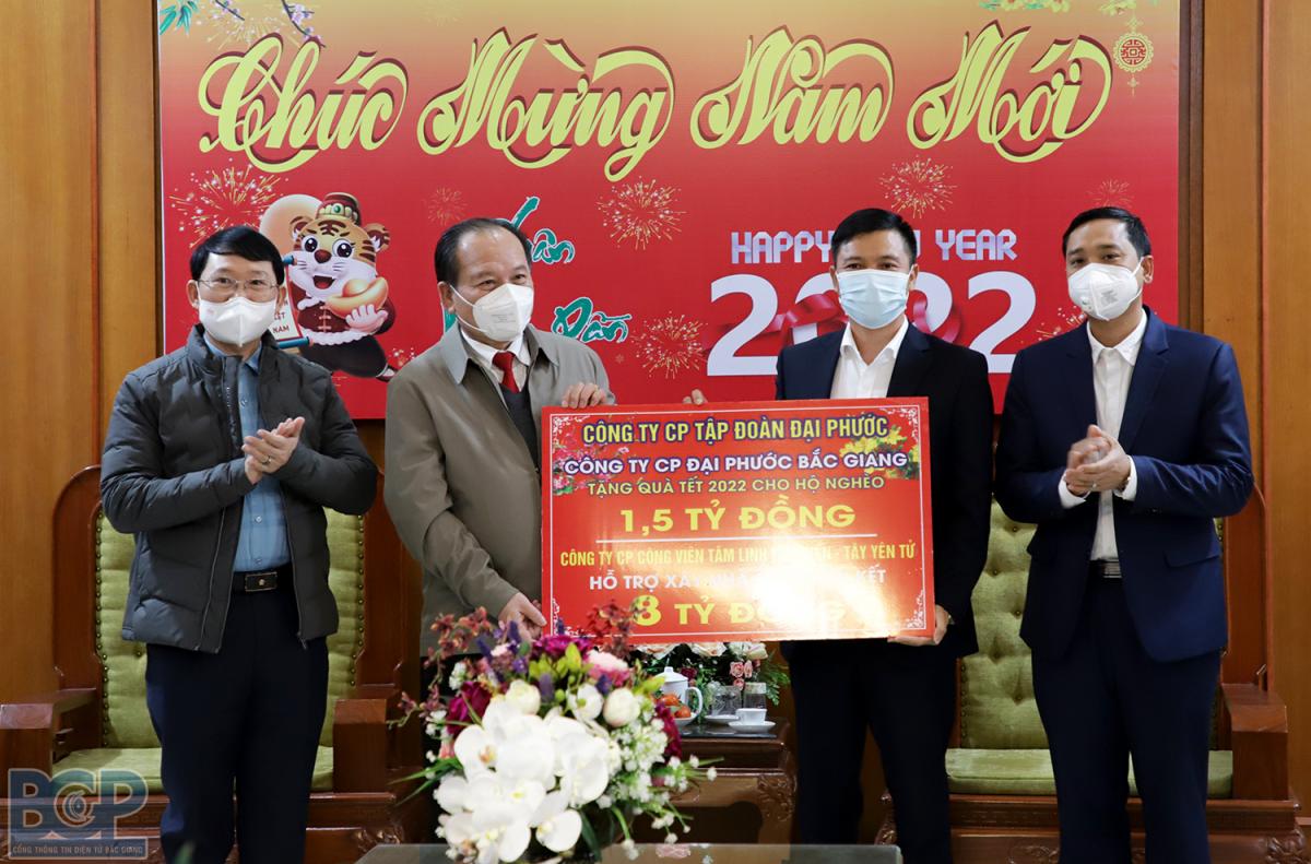 Nhân dịp này, Công ty Cổ phần Đại Phước Bắc Giang trao tặng 9,5 tỷ đồng cho Quỹ người nghèo tỉnh để thực hiện xây nhà Đại đoàn kết và chăm lo Tết cho người nghèo trên địa bàn huyện Lục Ngạn.