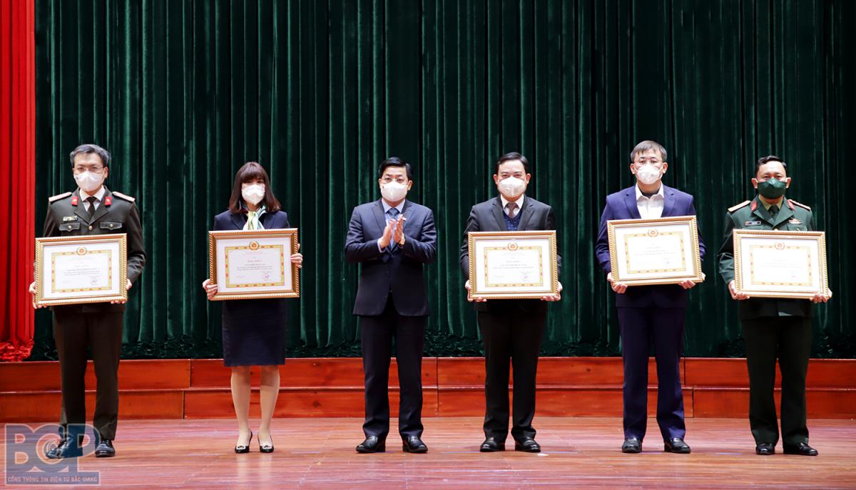 Tại hội nghị, Ban Thường vụ Tỉnh ủy trao tặng Bằng khen cho 03 Đảng bộ cấp huyện đạt tiêu chuẩn “Hoàn thành xuất sắc nhiệm vụ” tiêu biểu năm 2021; 02 Đảng bộ cấp huyện có thành tích tiêu biểu trong công tác lãnh đạo, chỉ đạo phòng, chống dịch Covid-19 năm 2021. Tặng Cờ thi đua cho 3 tổ chức cơ sở Đảng và tặng Bằng khen cho 02 tổ chức cơ sở Đảng, 15 chi bộ trực thuộc Đảng ủy cơ sở, 21 đảng viên đạt tiêu chuẩn “Hoàn thành xuất sắc nhiệm vụ” tiêu biểu 5 năm liền.