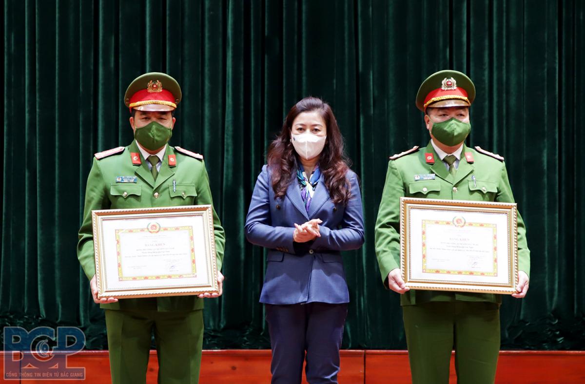 Phó Bí thư Thường trực Tỉnh ủy Lê Thị Thu Hồng trao tặng Bằng khen của Ban Thường vụ Tỉnh ủy