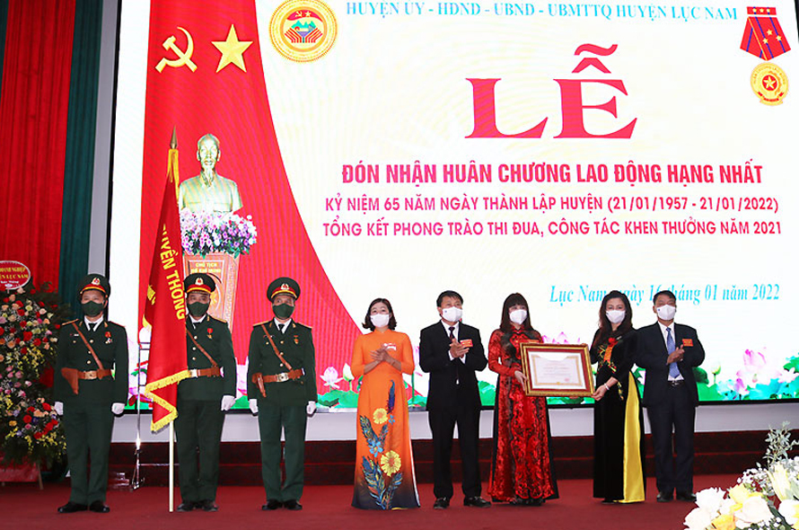 Ngày 16/1, huyện Lục Nam, tỉnh Bắc Giang tổ chức trọng thể Lễ đón nhận Huân chương Lao động hạng Nhất và kỷ niệm 65 năm Ngày thành lập huyện 21/1/1957-21/1/2022.