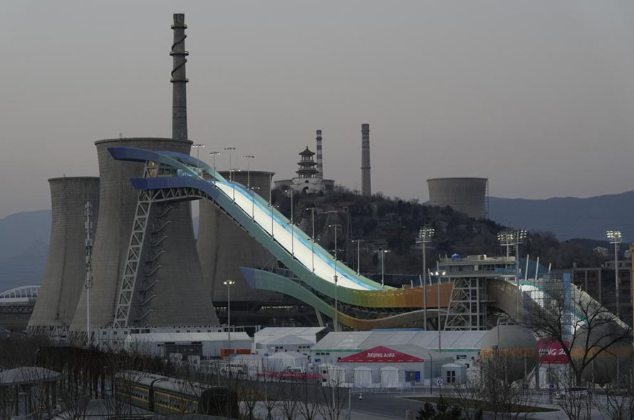 Công viên Big Air Shougang, địa điểm tổ chức cuộc thi trên không lớn trong Thế vận hội mùa đông Bắc Kinh 2022. Ảnh: AP