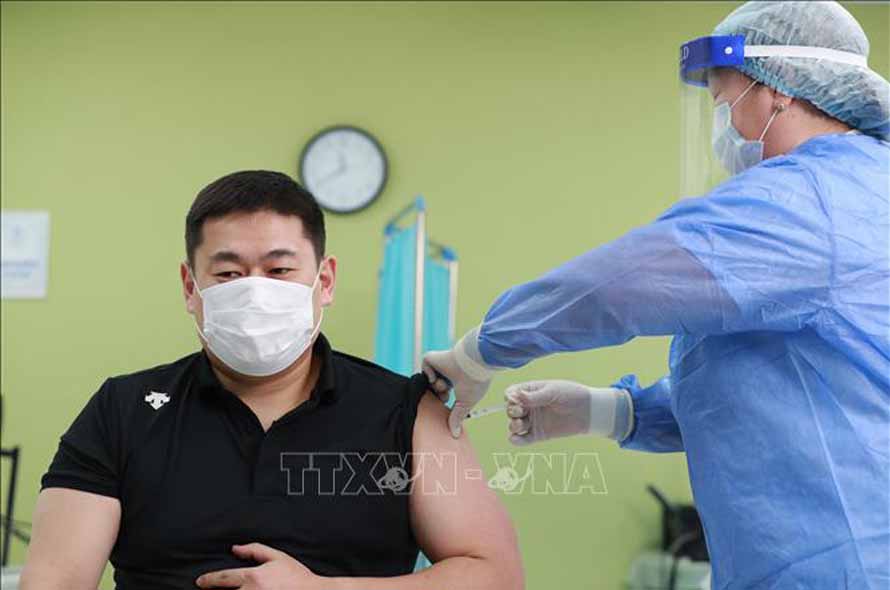 Tiêm vaccine COVID-19 tại Ulaanbaatar, Mông Cổ. Ảnh: AFP/TTXVN