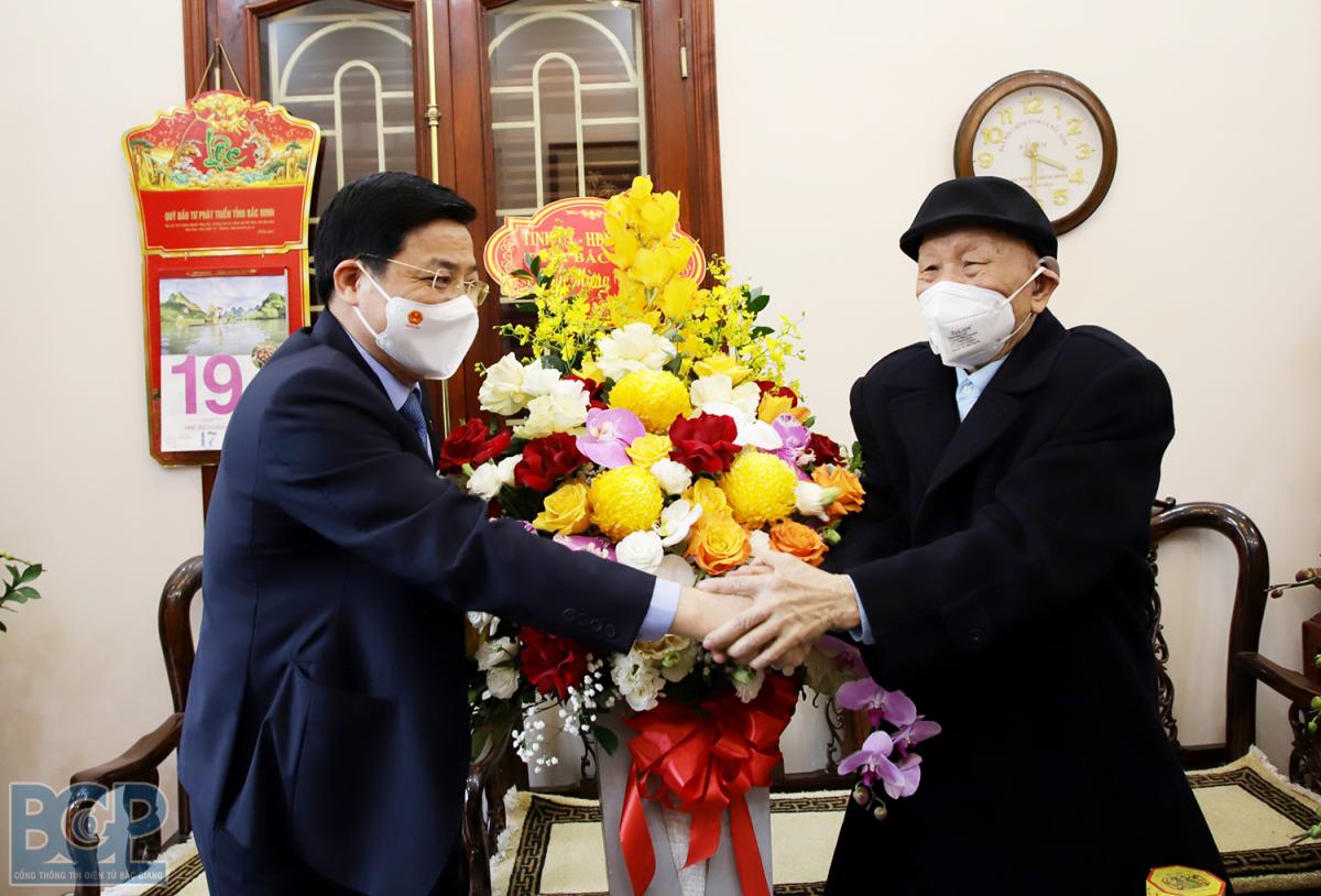 Bí thư Tỉnh ủy Dương Văn Thái tặng hoa chúc Tết đồng chí Ngô Đình Loan - Nguyên Chủ tịch UBND tỉnh Hà Bắc.