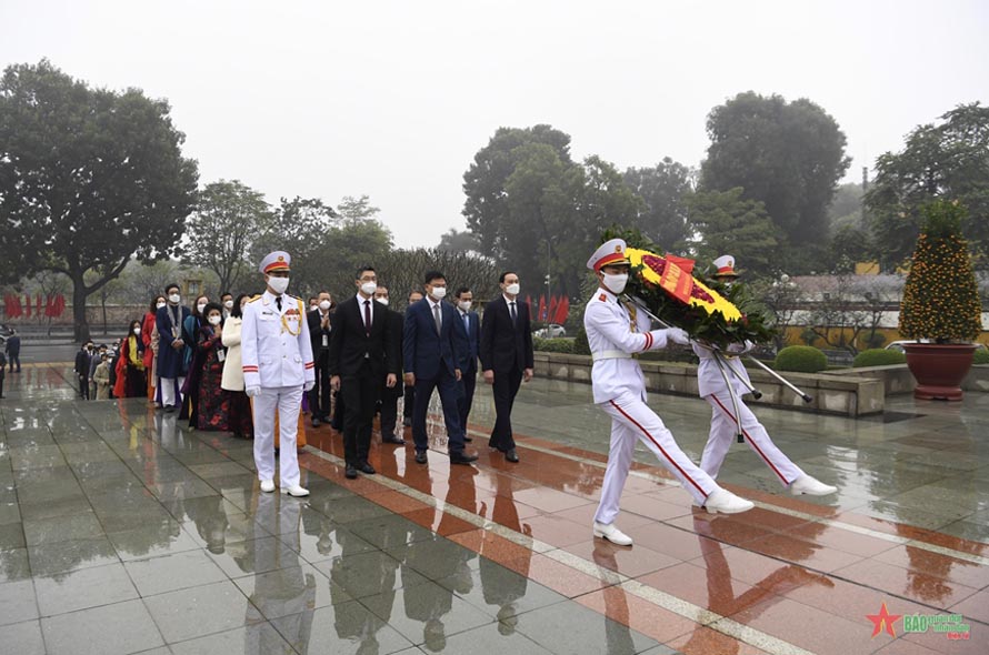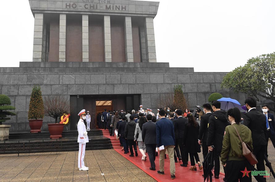 Sáng 22-1, trong khuôn khổ chương trình Xuân Quê hương 2022, Thứ trưởng Bộ Ngoại giao Pham Quang Hiệu, Chủ nhiệm Ủy ban Nhà nước về người Việt Nam ở nước ngoài dẫn đầu đoàn kiều bào tiêu biểu đã vào Lăng viếng Chủ tịch Hồ Chí Minh và đặt vòng hoa tại Đài tưởng niệm các Anh hùng liệt sĩ.