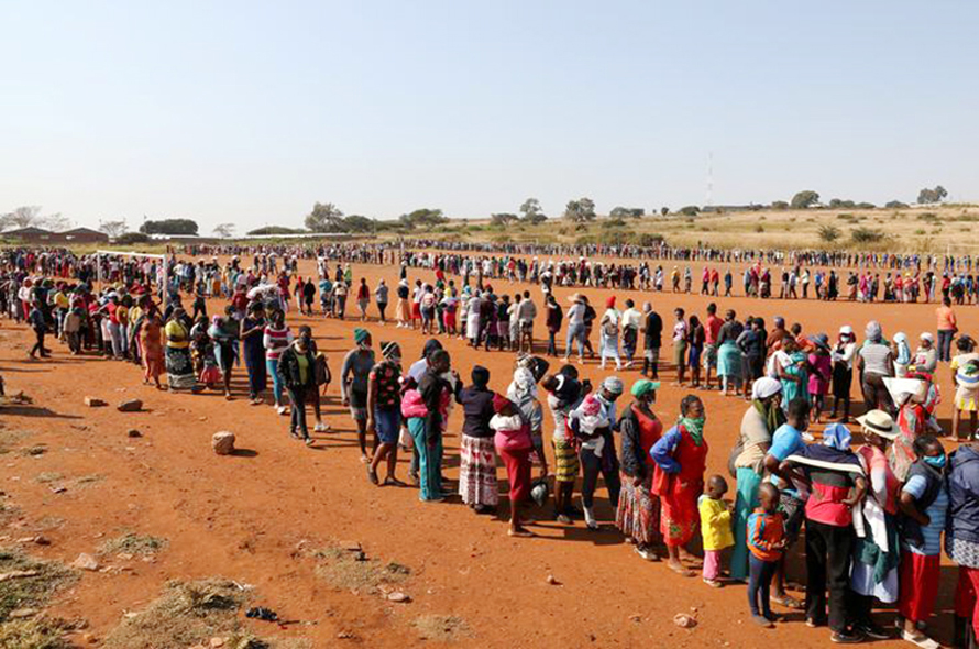 Dòng người xếp hàng chờ nhận thực phẩm ở Nam Phi. Ảnh REUTERS