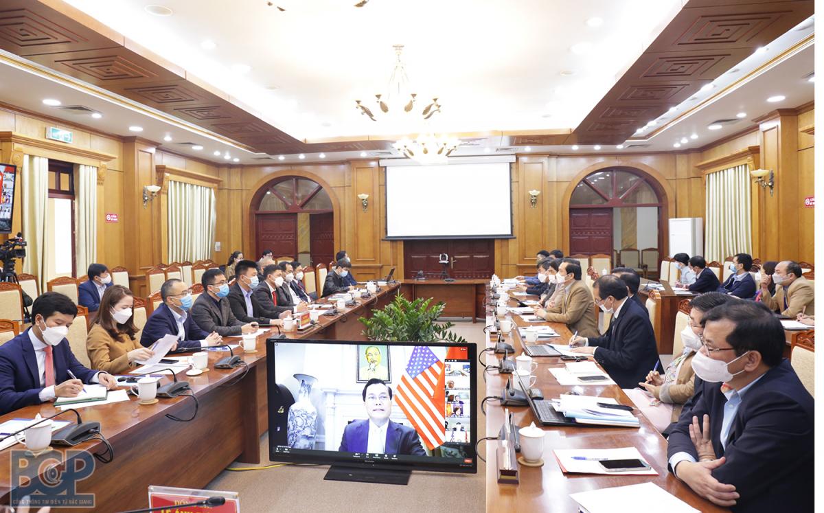 Sáng 22/01, UBND tỉnh Bắc Giang phối hợp với Đại sứ quán Việt Nam tại Hoa Kỳ tổ chức hội nghị trực tuyến nhằm tìm hiểu nhu cầu và định hướng hợp tác, phát triển giữa tỉnh Bắc Giang với các đối tác Hoa Kỳ.