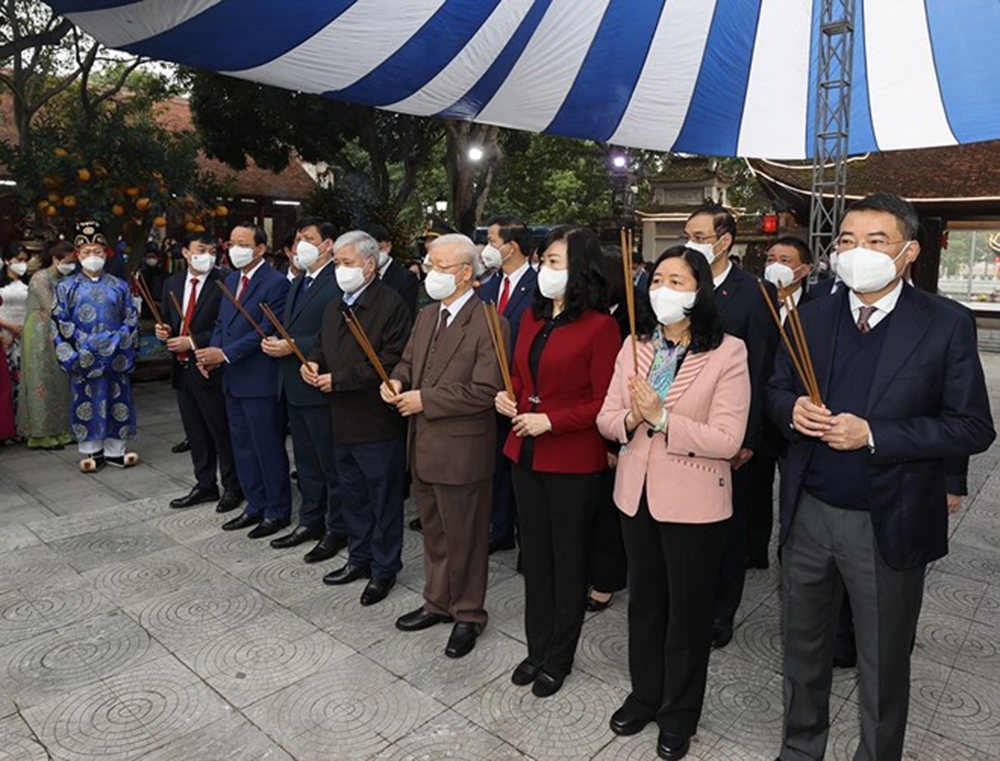 Tổng Bí thư Nguyễn Phú Trọng thăm Di tích lịch sử-văn hóa Đền Đô (phường Đình Bảng, thành phố Từ Sơn).
