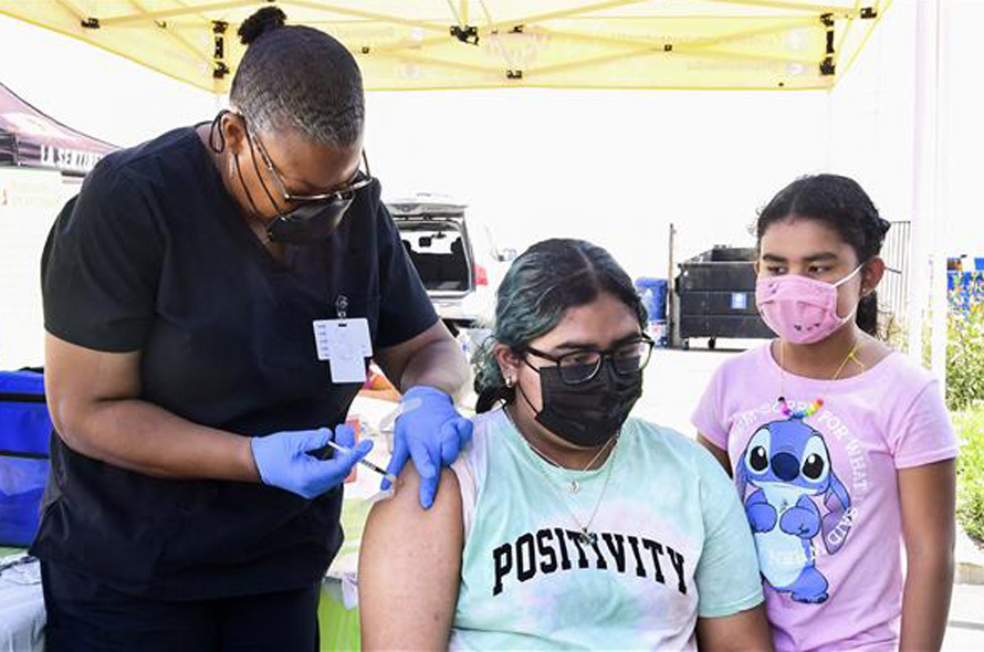 Nhân viên y tế tiêm vaccine ngừa COVID-19 cho trẻ em tại Los Angeles, California, Mỹ. Ảnh: AFP/TTXVN