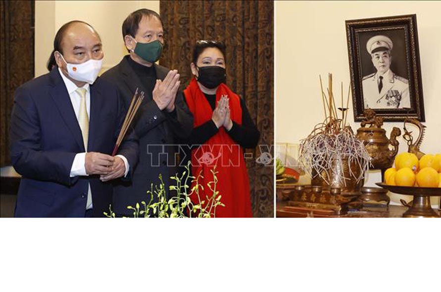 Cũng trong dịp này, Chủ tịch nước Nguyễn Xuân Phúc đã tới dâng hương Đại tướng Võ Nguyên Giáp - Người Chiến sĩ cách mạng kiên trung, học trò xuất sắc và gần gũi của Chủ tịch Hồ Chí Minh; Tổng Tư lệnh và là vị Đại tướng đầu tiên của Quân đội nhân dân Việt Nam. Chủ tịch nước Nguyễn Xuân Phúc một lần nữa nhắc lại công lao to lớn của Đại tướng trong việc hình thành đường lối chiến tranh nhân dân và phát triển học thuyết quân sự Việt Nam thời đại Hồ Chí Minh. Đại tướng là người Anh cả của Quân đội Nhân dân Việt Nam Anh hùng; người đã giáo dục, bồi dưỡng phẩm chất "Bộ đội Cụ Hồ" cho cán bộ, chiến sĩ Quân đội nhân dân Việt Nam.