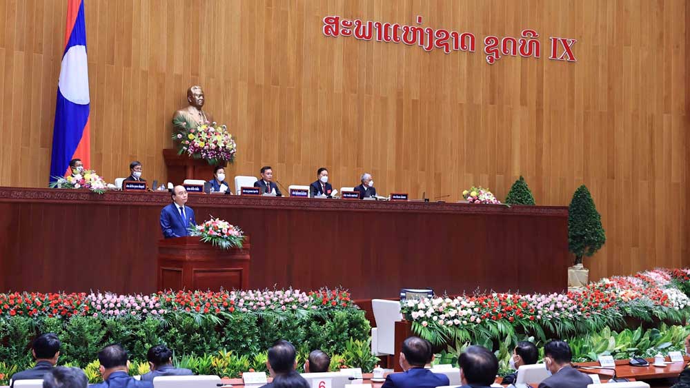 Chủ tịch nước Nguyễn Xuân Phúc phát biểu tại kỳ họp lần thứ nhất, Quốc hội Lào khóa IX. |