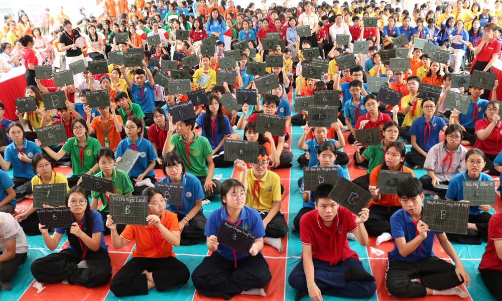 Học sinh thi tìm hiểu lịch sử tại Ngày hội Sách và Văn hóa đọc. |