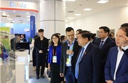 Các đại biểu tham quan gian trưng bày tại Triển lãm ngành công nghiệp bán dẫn Việt Nam 2024.