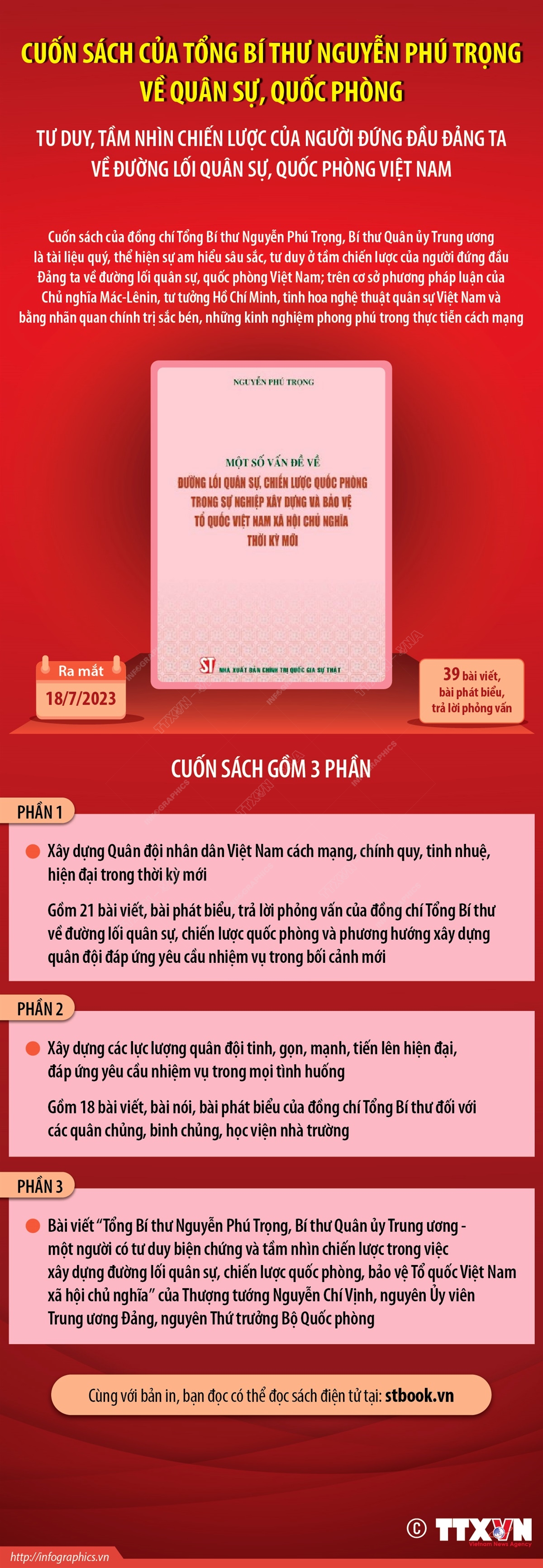 Nội dung cơ bản của Cuốn sách: “Một số vấn đề về đường lối quân sự, chiến lược quốc phòng trong sự nghiệp xây dựng và bảo vệ Tổ quốc Việt Nam xã hội chủ nghĩa thời kỳ mới” của Tổng Bí thư Nguyễn Phú Trọng, Bí thư Quân ủy Trung ương, tiếp tục khẳng định nguyên tắc Đảng lãnh đạo tuyệt đối, trực tiếp về mọi mặt đối với lực lượng vũ trang, sự nghiệp quốc phòng, an ninh, bảo vệ Tổ quốc; đồng thời là bước phát triển mới về tư duy, nhận thức của Đảng đối với công cuộc bảo vệ Tổ quốc “từ sớm, từ xa”.